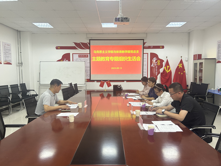 9月13日下午,马克思主义学院与体育教学部党总支在雷锋馆208党员活动室召开学习贯彻习近平新时代中国特色社会主义思想主题教育专题组织生活会,党委书记邢桂强到会指导,会议由党总支书记谈笑主持。