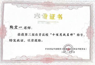 鞠宏一青岛“十佳思政名师”
