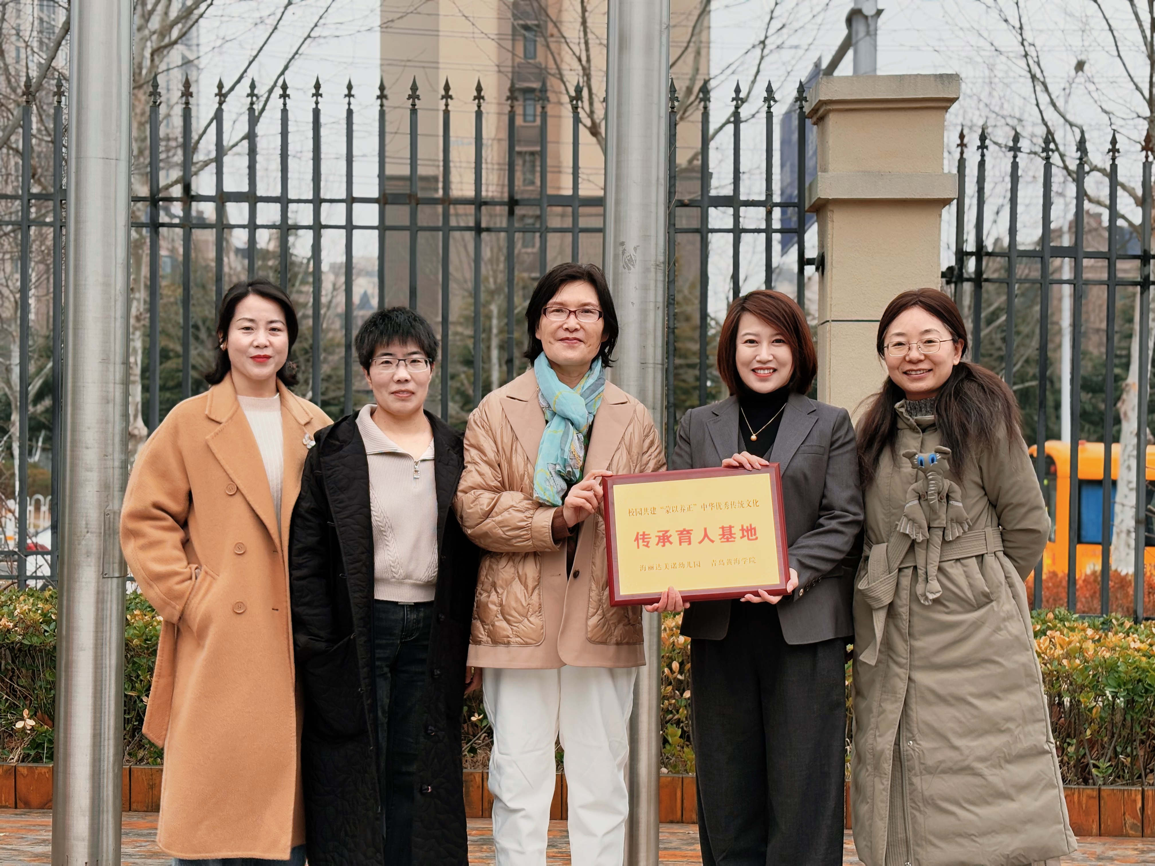 在热烈的掌声中,何亿嘉园长和吴晓峰教授共同为“蒙以养正”中华优秀传统文化传承育人基地揭牌。揭牌仪式结束后,全体人员合影留念,记录下这一珍贵时刻。
