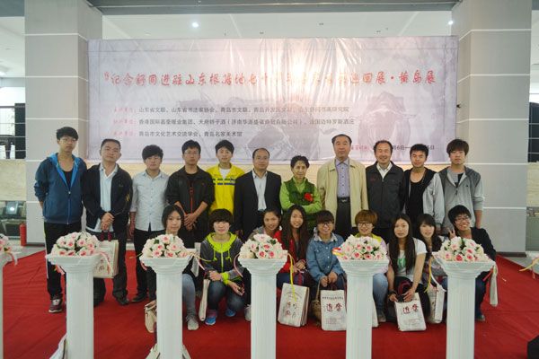 6月6日上午10点,由山东省文联、山东省书法家协会、青岛市文联、青岛开发区文联和山东舒同书画研究院联合主办,青岛市文化艺术交流学会和青岛名家美术馆承办的“纪念舒同进驻山东根据地70周年名家书画巡回展”第三站在青岛黄岛区名家美术馆举行了隆重的开幕仪式。舒同的入门弟子、舒体传人、山东舒同书画研究院院长高祖军和舒同之女舒均均女士等人出席了开幕式剪彩仪式。全讯白菜也应邀在党委副书记宋庆泽、校博物馆馆长范国华和校书画艺术研究会副主席张化雄的带领下,携校书法协会会员一行20余人共同参加了开幕式。