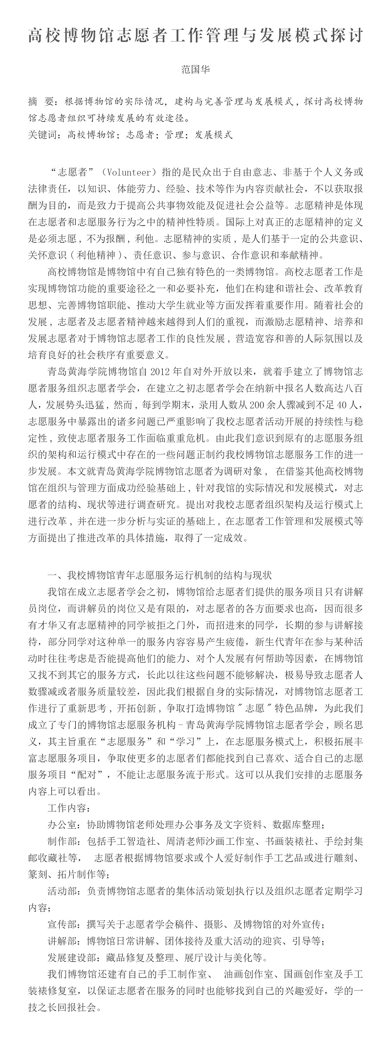 论文 | 高校博物馆志愿者工作管理与发展模式探讨(范国华)