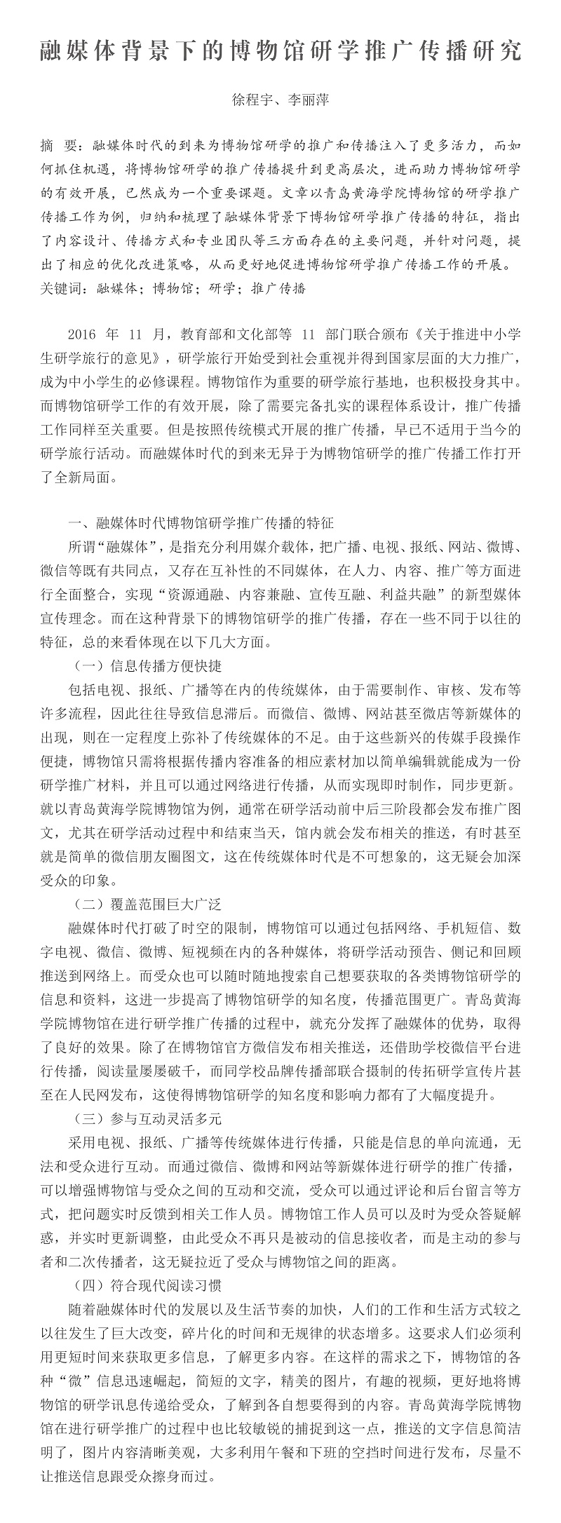 论文 | 融媒体背景下的博物馆研学推广传播研究(徐程宇、李丽萍)