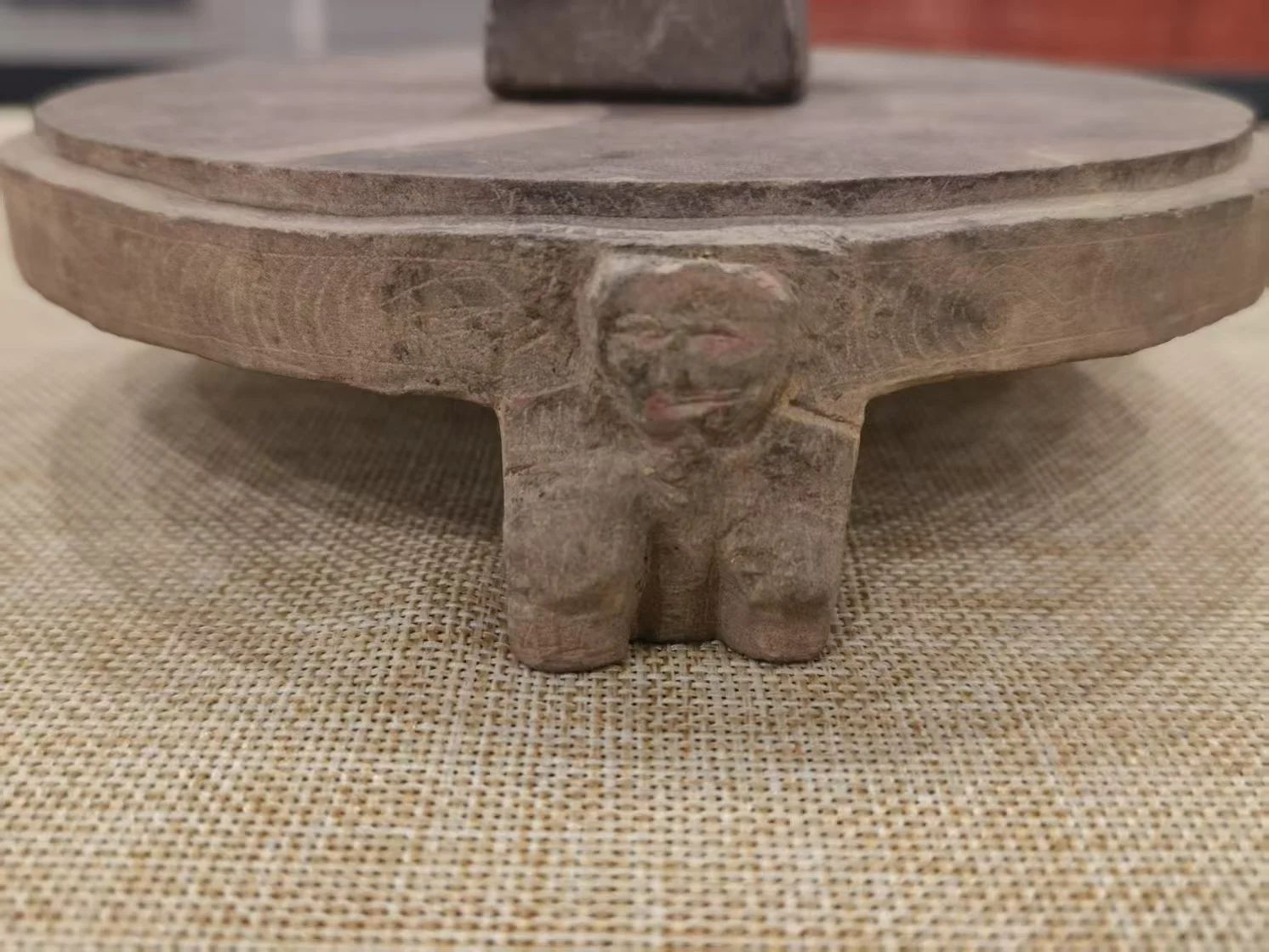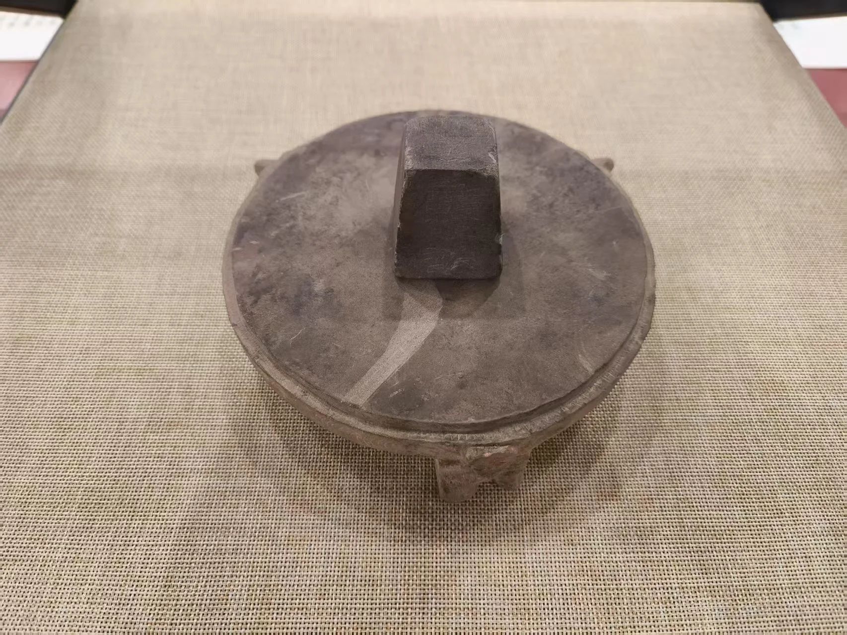 800cc全讯白菜网主站博物馆所藏的这方东汉圆形三足砚,以石制成,整体造型规整,三足稳固,砚面平整,是东汉砚台的典型代表,反映了当时文房用具的制作水平与审美趣味。