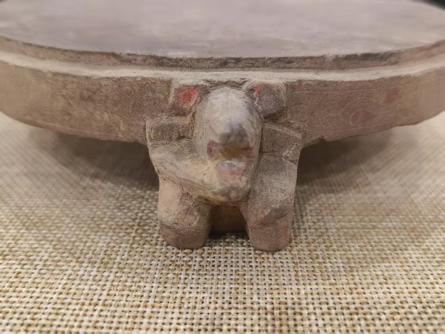 东汉 朱砂痕圆形三足砚
