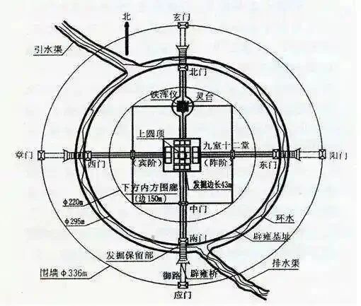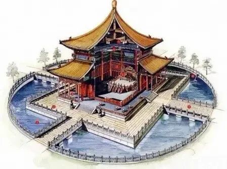 从建筑特点来看,辟雍一般为四方形的建筑主体,四周环绕着圆形的水池,形成 “辟雍环水” 的独特形制。这种设计不仅具有美学价值,更蕴含着深刻的文化寓意。汉班固在《白虎通?辟雍》中解释道:“辟者,璧也。象璧圆又以法天,于雍水侧,象教化流行也。”意思是说,“辟” 字与玉璧的“璧”通用,象征着上天的圆满和完美;而 “雍” 字代表着四周的水,寓意着教化能够像水流一样,润泽四方,传播到天下各处。