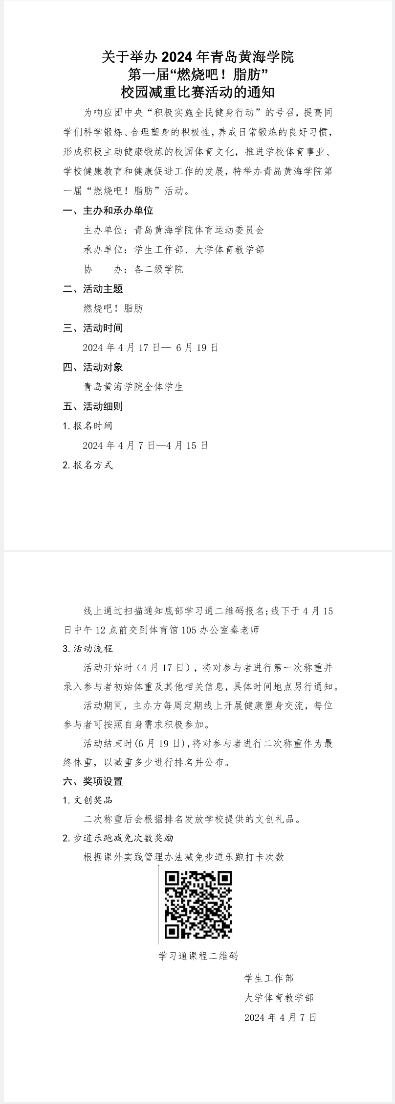 关于举办2024年800cc全讯白菜网主站第一届“燃烧吧!脂肪”校园减重比赛活动的通知