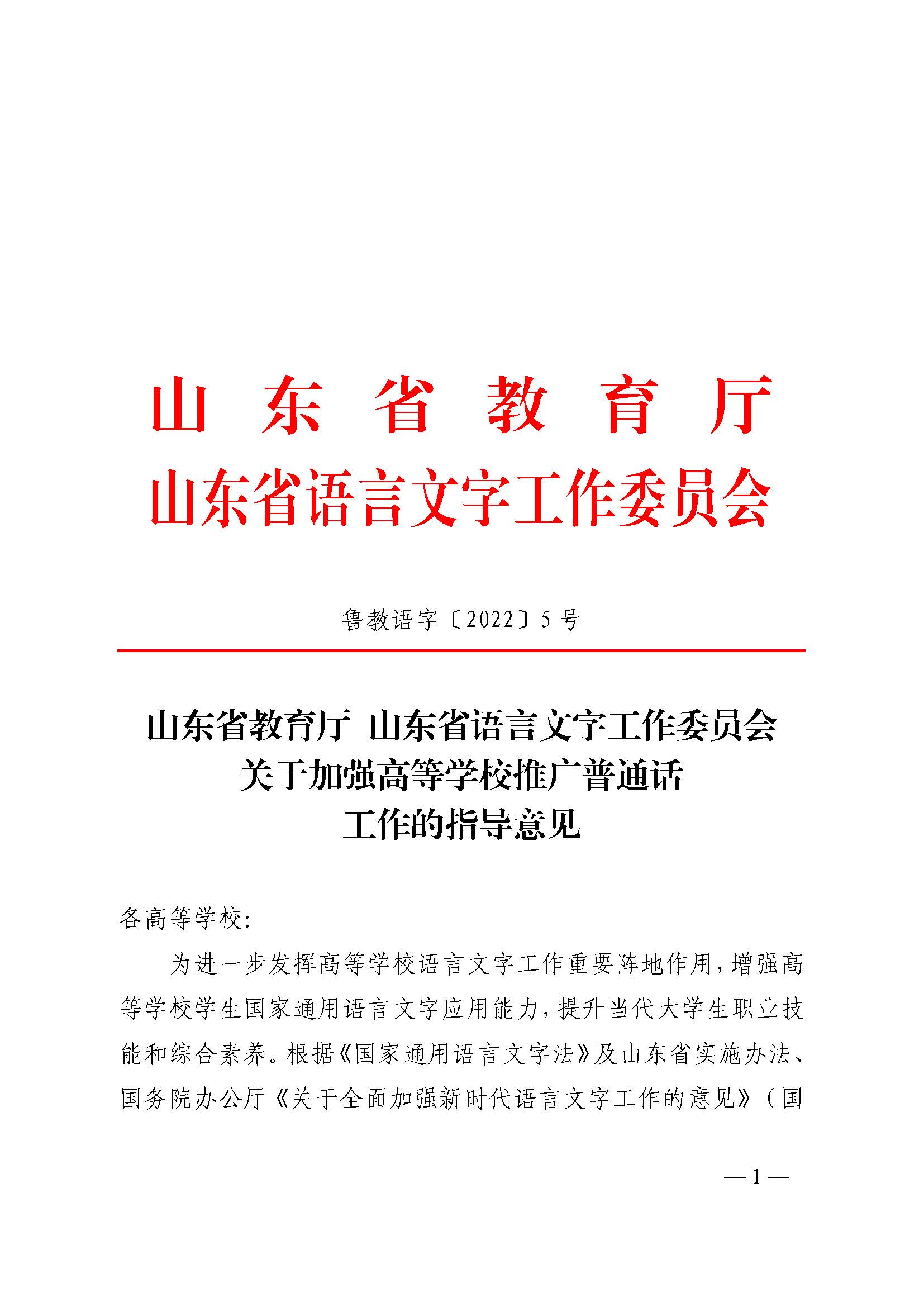 山东省教育厅 山东省语言文字工作委员会关于加强高等学校推广普通话工作的指导意见