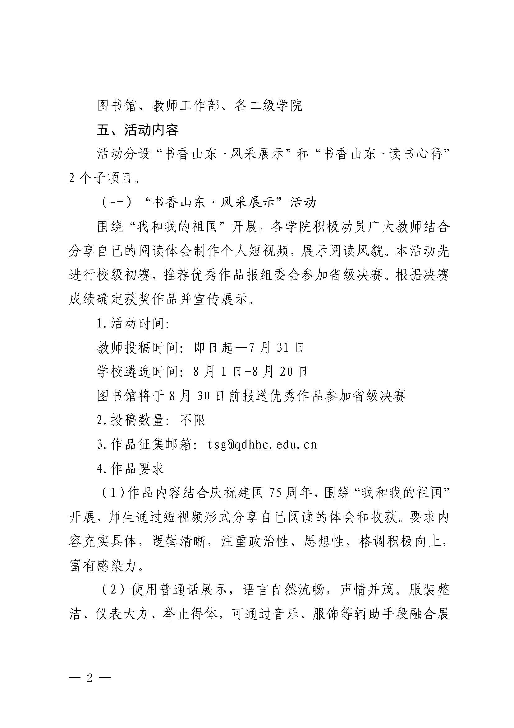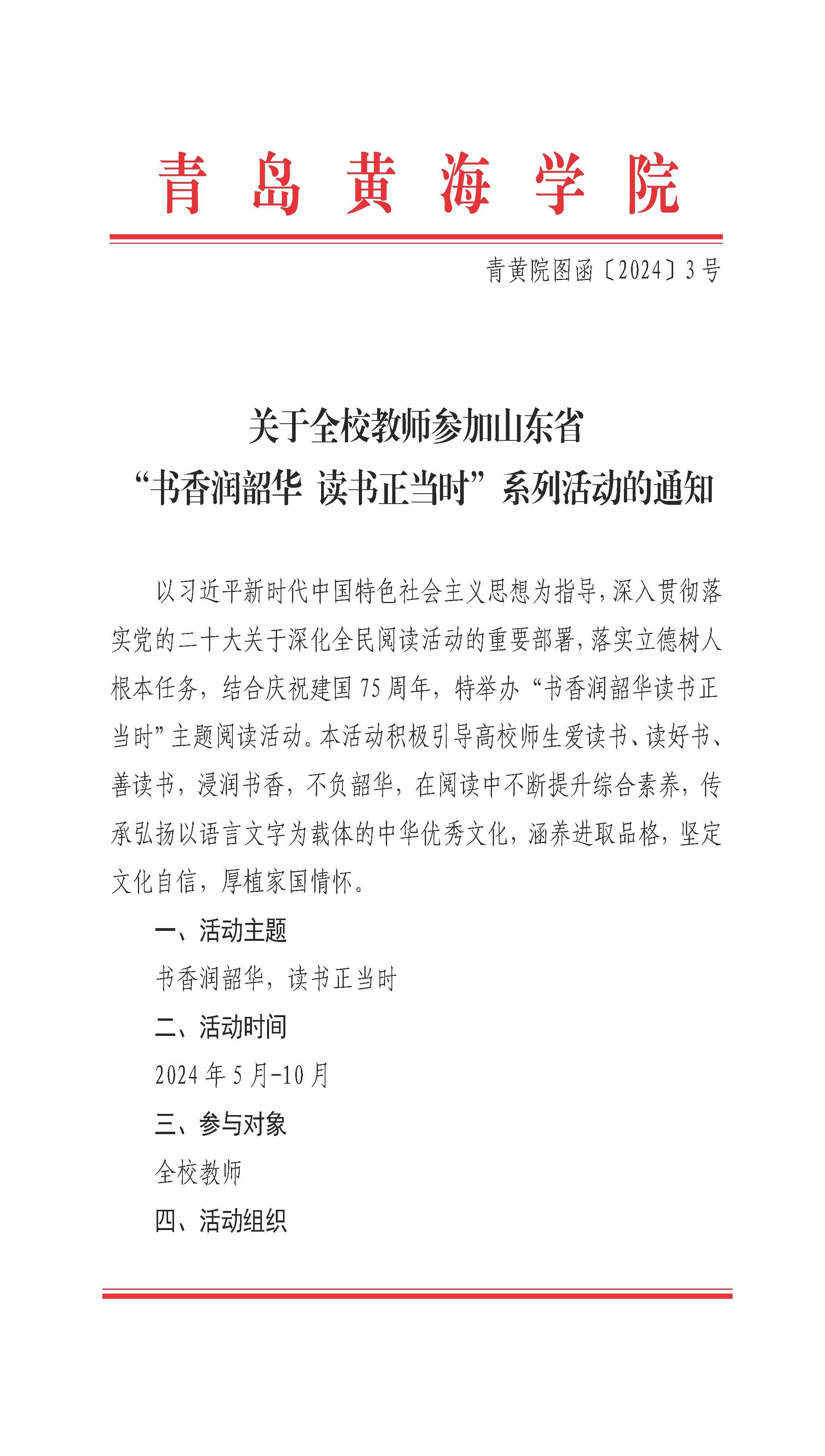 关于全校教师参加山东省“书香润韶华读书正当时”系列活动的通知
