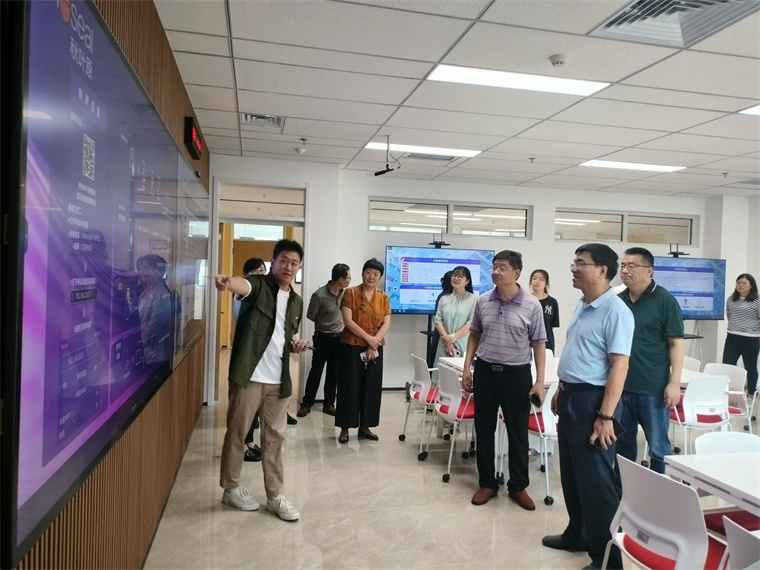 9月13日上午,西海岸新区教育和体育局学区服务指导中心主任田怀玉一行10人来全讯白菜调研指导老年教育工作,800cc全讯白菜网主站校务委员会副主任、关工委主任宋庆泽,合作发展处、招生就业处处长刘常江,继续教育中心副主任郭敏等人陪同调研。