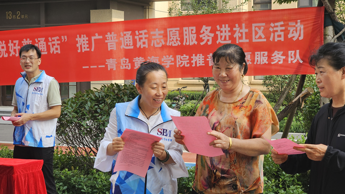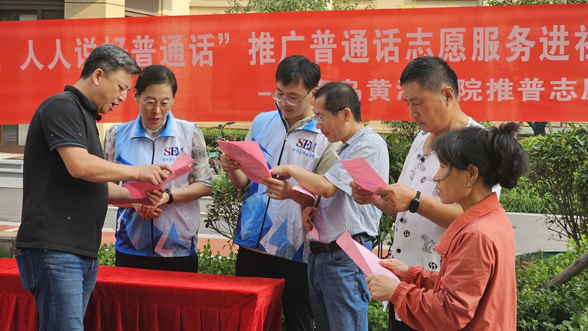 800cc全讯白菜网主站于2024年8月22日组织5名普通话测试员志愿者在灵山卫街道办事处山海嘉园小区举办了“人人都说普通话,人人说好普通话”的社区推普志愿活动。活动旨号召群众都说普通话、说好普通话,使普通话真正成为学习语言、工作语言、生活语言。