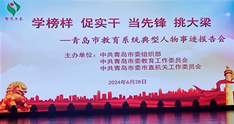为庆祝中国共产党成立103周年,6月28日下午,青岛市委教育工委在青岛艺术学校实验剧场组织召开以“学榜样 促实干当先锋 挑大梁”为主题的教育系统典型人物事迹报告会。市委组织部、市直机关工委、市教育局有关领导出席会议,教育工委所属高校、高等教育机构等党政主要负责同志、“两优一先”表彰对象参加会议。