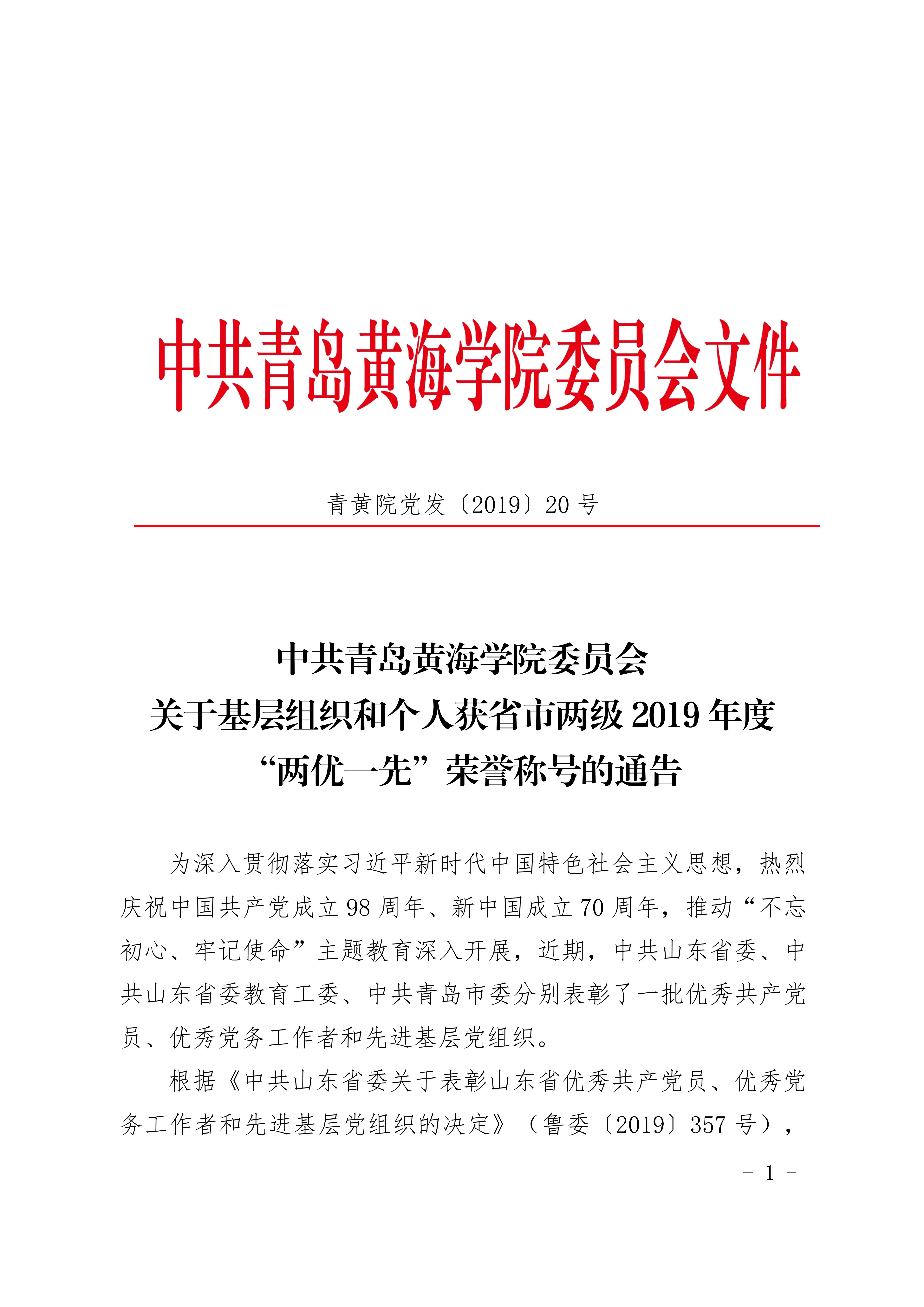 中共800cc全讯白菜网主站委员会关于基层组织和个人获省市两级2019年度“两优一先”荣誉称号的通告