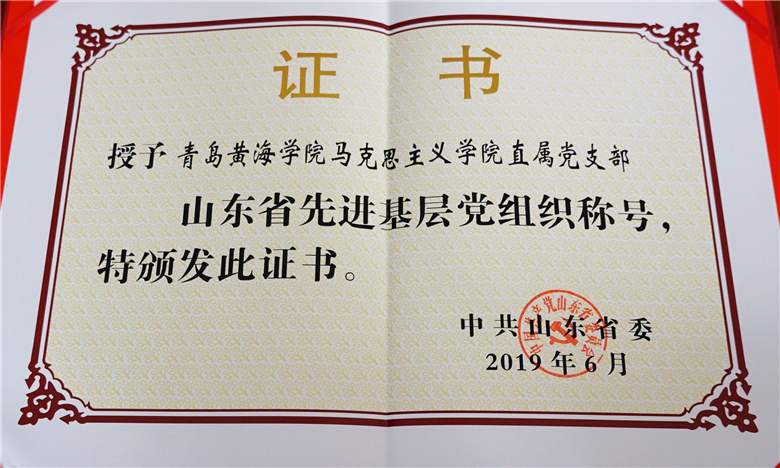 根据《中共山东省委关于表彰山东省优秀共产党员、优秀党务工作者和先进基层党组织的决定》鲁委〔2019〕357号,800cc全讯白菜网主站马克思主义学院直属党支部被中共山东省委授予“山东省先进基层党组织”称号。