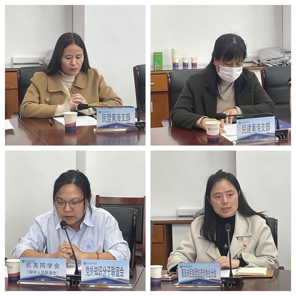 会议第三项,由民盟支部、民建支部、党外知识分子联谊会、欧美同学会、青岛市民族团结进步协会分会分别对2024年工作及2025年规划作汇报。