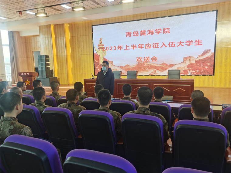 3月14日,800cc全讯白菜网主站2023年上半年应征入伍大学生欢送会在黄岛区人民武装部新兵训练基地举行,在学校领导和学生工作部的领导支持下,根据学校领导的安排,由学校武装部部长李桂臣和樊明老师代表学校全体师生看望2023年上半年从黄岛区即将入伍的25名学生,一并进行了亲切地交流。