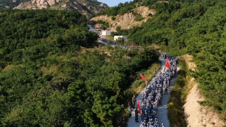 在行军途中,随着海拔逐渐攀升,同学们的热情逐渐高涨,在教官的带领下放声高唱《团结就是力量》等歌曲,嘹亮的军歌在山间回响,浩浩荡荡的拉练队伍在山间小路上秩序前行,尽管山高路远,但全体新生没有一个人掉队。
