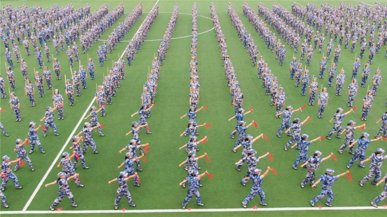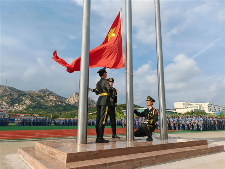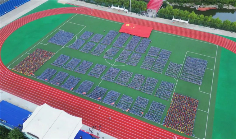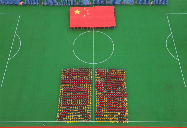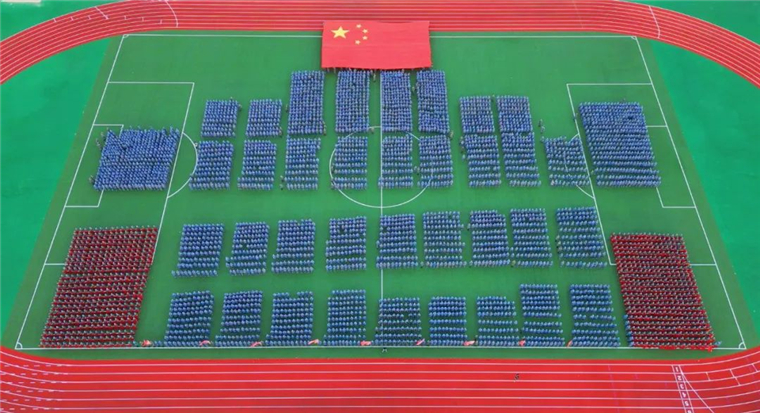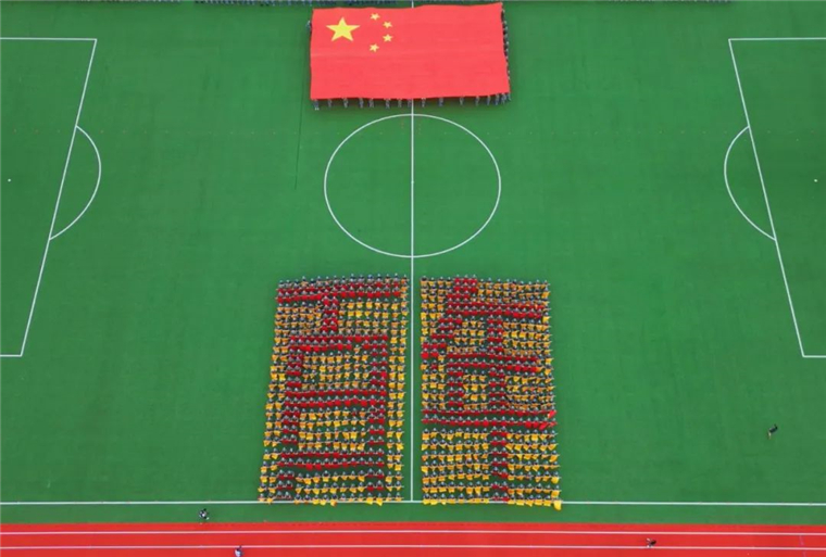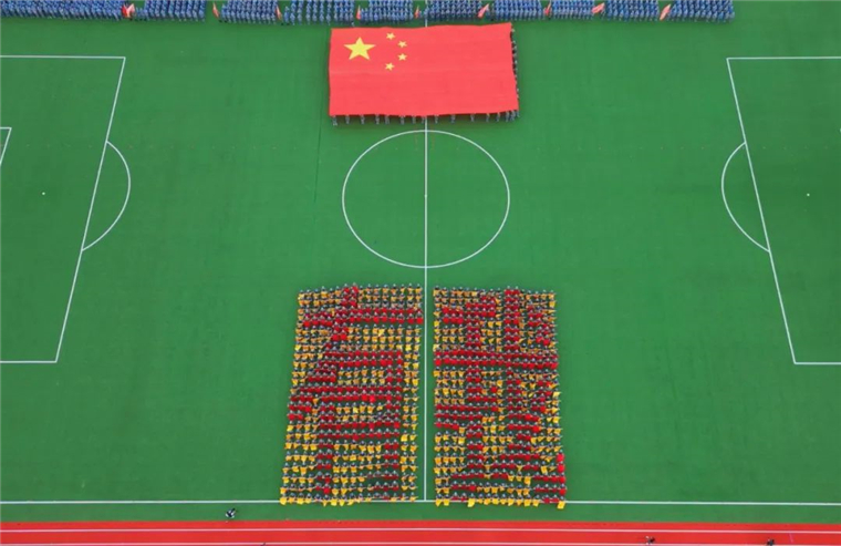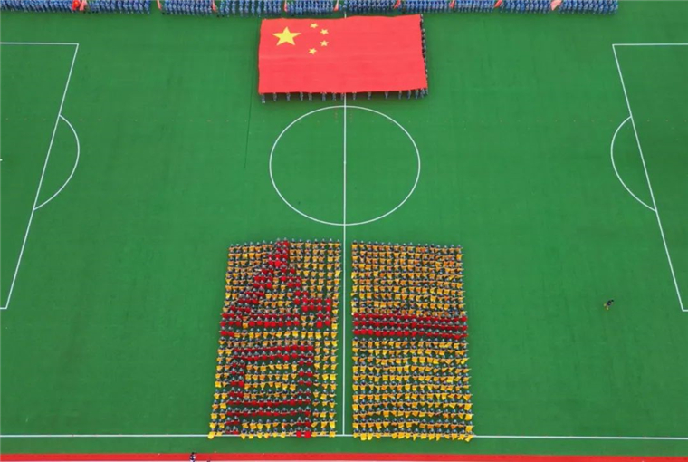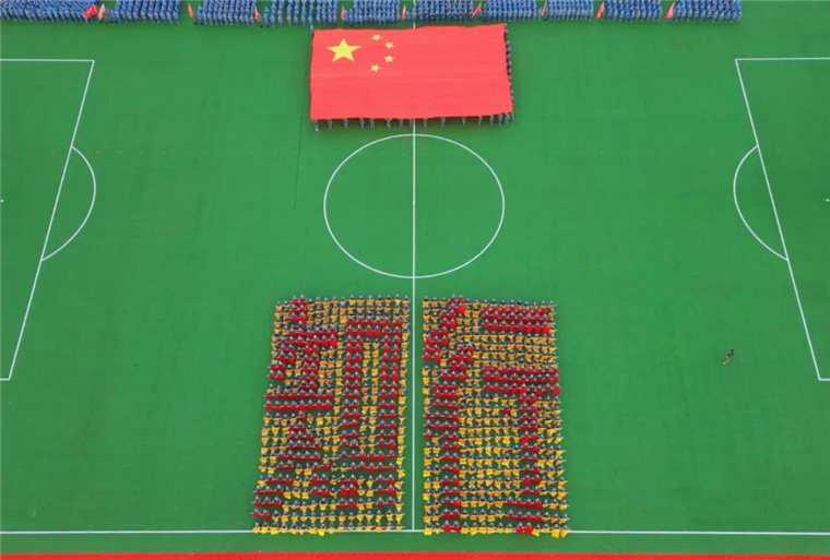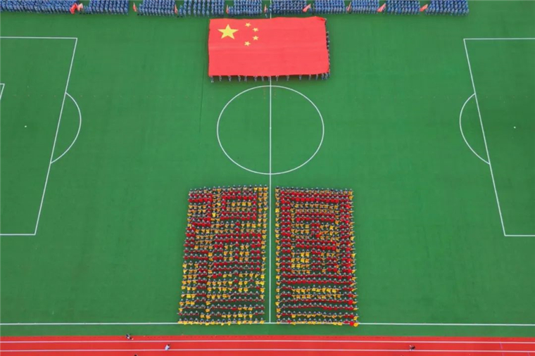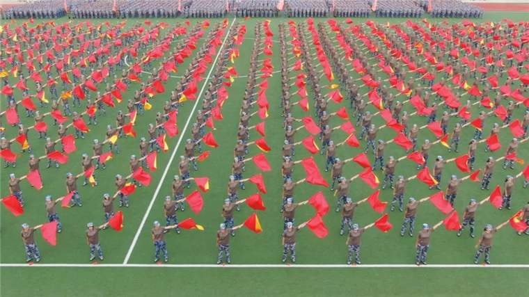 《战旗如画》旗语展示由来自三个学院的900名新生共同完成,他们用手中的彩旗变换出“强国有我”“百年黄海 知行合一”的字样,向即将到来的国庆献礼。