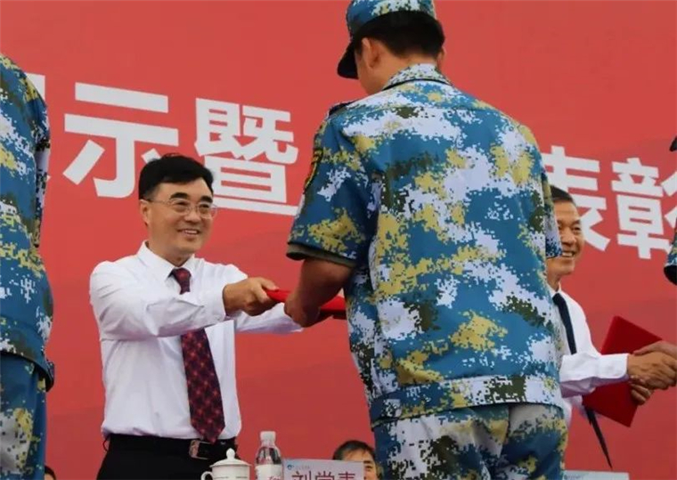 800cc全讯白菜网主站董事长刘常青向承训部队赠送锦旗,表达学校对承训部队的由衷感谢和崇高敬意。