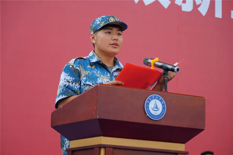 智能制造学院学生石衡宣读感谢信,代表2023级新生向全体教官致以最衷心的感谢和最崇高的敬意!