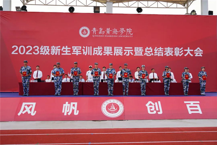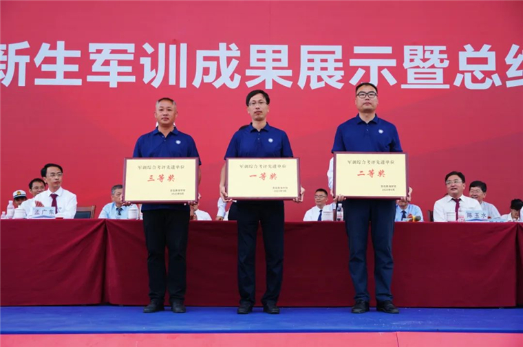 孟广东副校长宣读《关于表彰2023 级新生军训工作先进个人的决定》《关于表彰2023 级新生军训工作先进集体的决定》,主席台领导为2023 级新生军训工作先进个人和先进集体颁奖。
