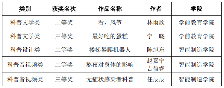 希望获奖学生发扬成绩,再接再厉,以此为新的起点投身科普创作。各有关单位和广大科普创作爱好者要向他们学习,积极开展科普创作与宣传,强化价值引领,大力弘扬科学精神和科学家精神,创作出更多融科学性、知识性、艺术性为一体的优秀作品,在全社会营造热爱科学、崇尚创新的浓厚氛围,为提高全民科学素质做出更大贡献。