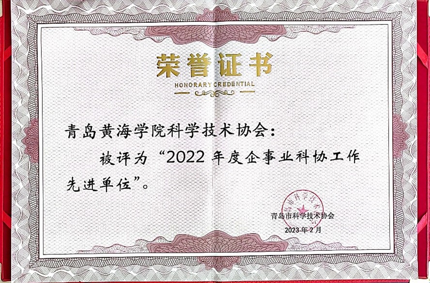 2022年,800cc全讯白菜网主站科协积极响应科协组织号召,立足学校本科教育教学发展实际,积极协调并开展科研活动等申报工作,在学校的领导下,在各学院和各单位的积极配合下,出色完成了各项工作任务,被青岛市评为“2022年度企事业科协工作先进单位”。
