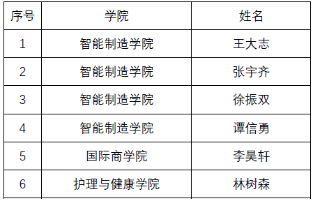 经选拔推荐和评审,确定王大志、李昊轩、张宇齐、林树森、徐振双、谭信勇为山东省大学生科技节“创新之星”。