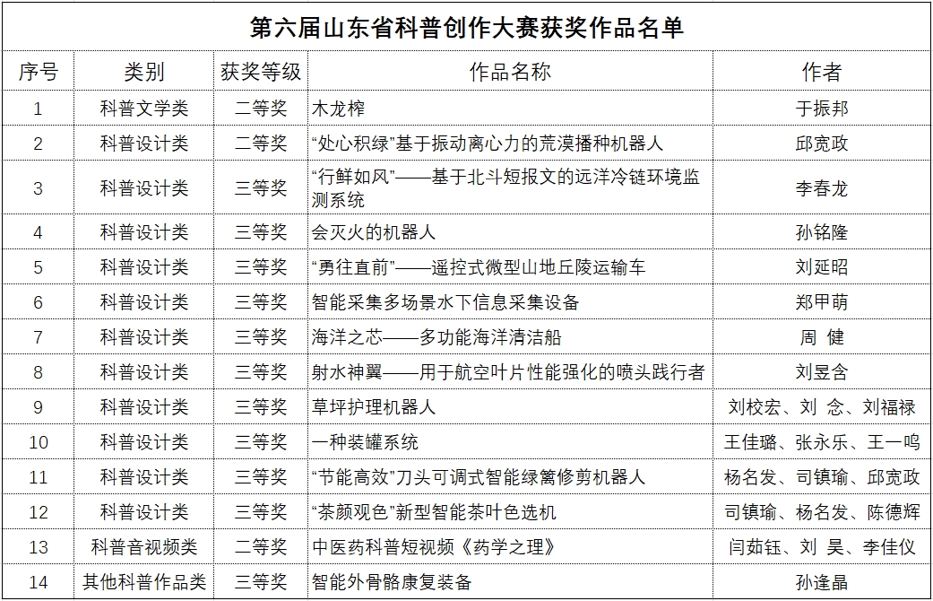为深入贯彻党的二十大精神,认真落实习近平总书记关于科普和科学素质建设的重要论述精神,努力打造高质量科普服务体系,鼓励全社会积极参与科普创作,进一步丰富科普资源供给,围绕“繁荣科普文化、提升科学素质”主题,由山东省科学技术协会、山东省教育厅、山东省科学技术厅、山东省工业和信息化厅、山东省文化和旅游厅主办的第六届山东省科普创作大赛面向社会公开征集科普作品,经大赛评审委员会初审、终审,全讯白菜师生获奖14项。全讯白菜获评大赛优秀组织单位。