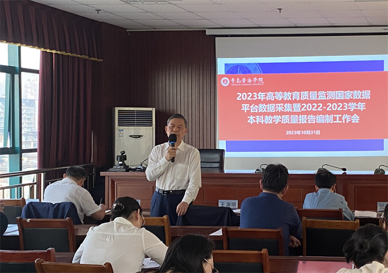 2023年10月31日,2023年高等教育质量监测国家数据平台数据采集暨2022-2023学年本科教学质量报告编制工作会在行政楼8楼会议室召开。会议由副校长梁忠环主持,校长王渊明出席会议并讲话,相关职能部门和二级学院的负责人以及信息采集填报人员参加了会议。