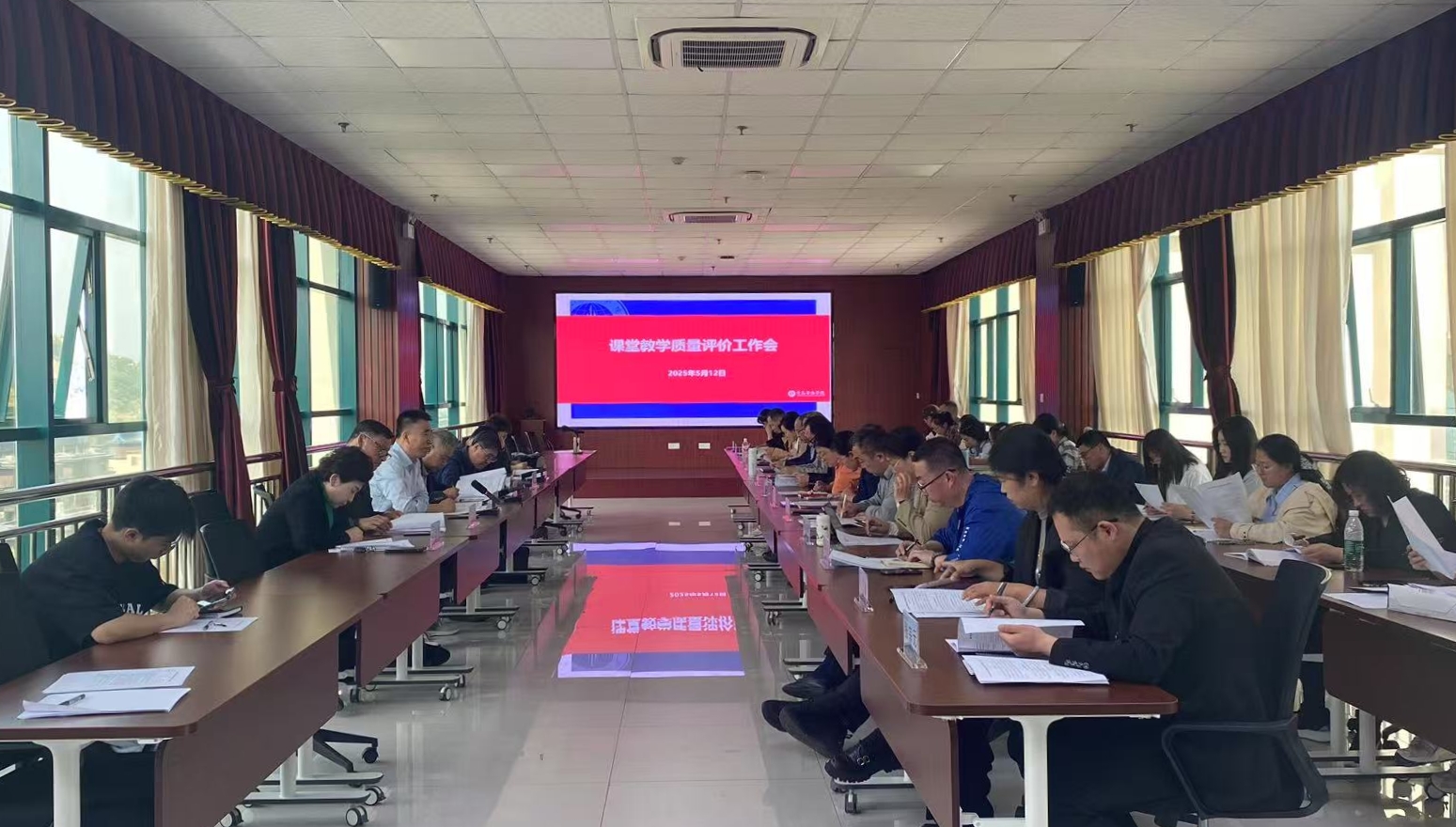 2025年5月12日,学校在办公楼8楼会议室组织召开课堂教学质量评价工作会。副校长王鹏程、质量监控与评估中心副主任郭均栋、校级专职教学督导、各学院教学副院长及骨干教师参加会议。