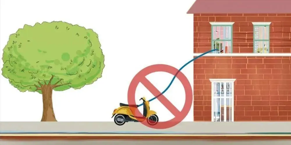 禁止违反用电安全要求,私拉电线和插座为电动自行车充电。