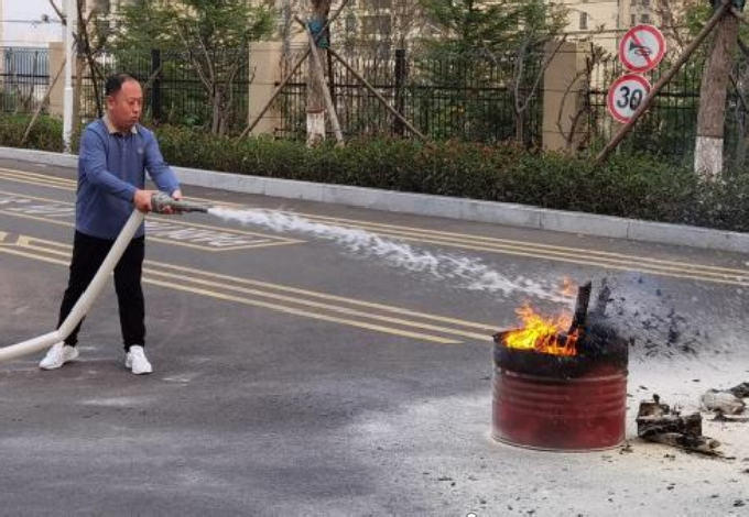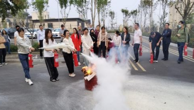 疏散结束后,国家一级注册消防工程师张建明进行常用消防器材实操技能培训,现场指导全体参加应急疏散演练的师生轮流使用干粉灭火器进行实际灭火和使用消火栓进行喷水灭火,确保每一位馆员都会熟练使用干粉灭火器和消火栓扑灭初起火灾。