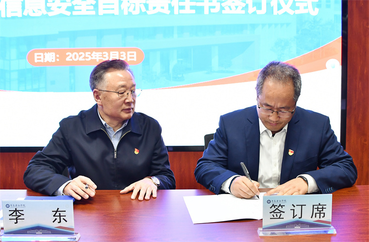 最后,李清山校长与各单位、各部门签订《2025年度安全稳定工作责任书》,李东书记与各党总支和各单位、各部门签订《2025年度意识形态工作责任书》和《2025年度网络信息安全责任书》。