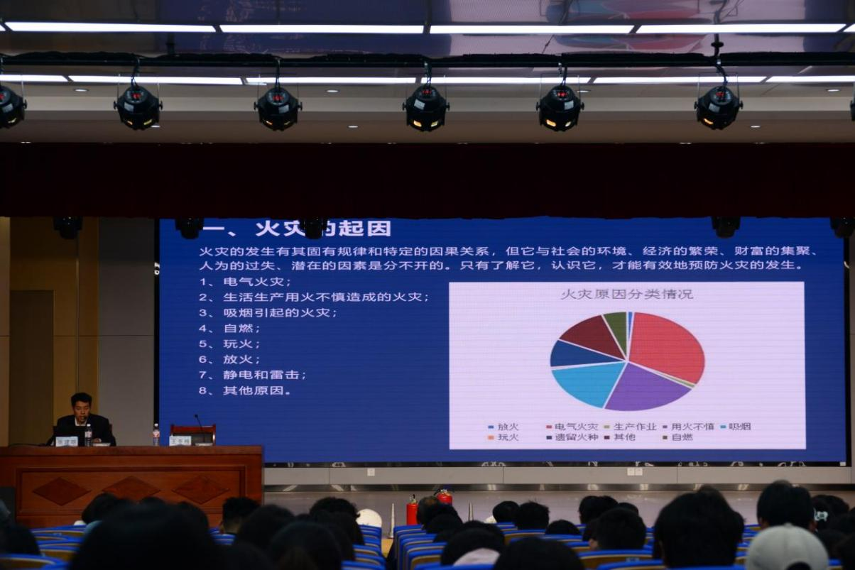 本次培训由学生工作部联合安全管理处共同举办,特邀校外国家一级注册消防工程师主讲,370余名学生干部参加。