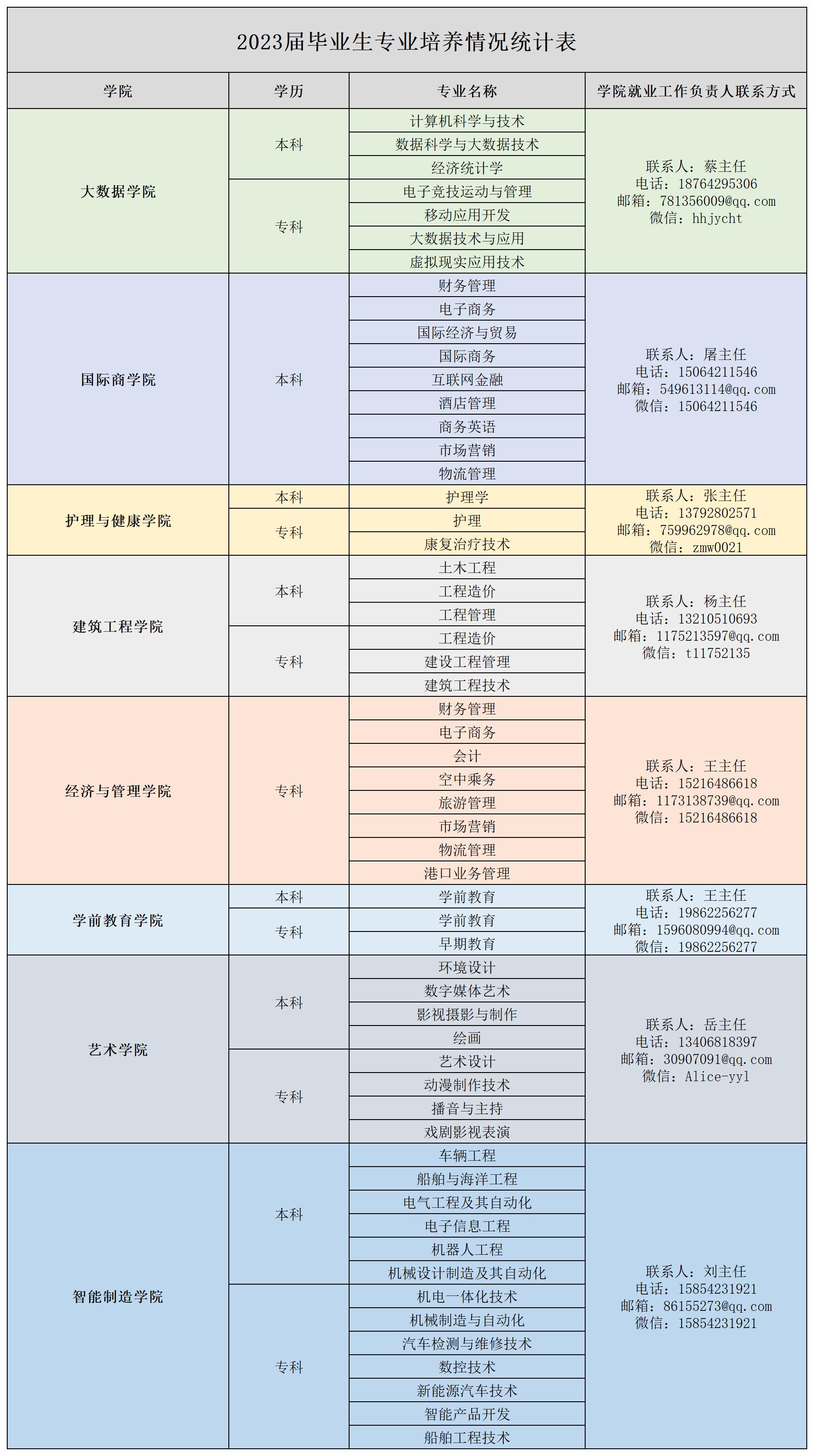 800cc全讯白菜网主站2023届毕业生专业培养情况统计表