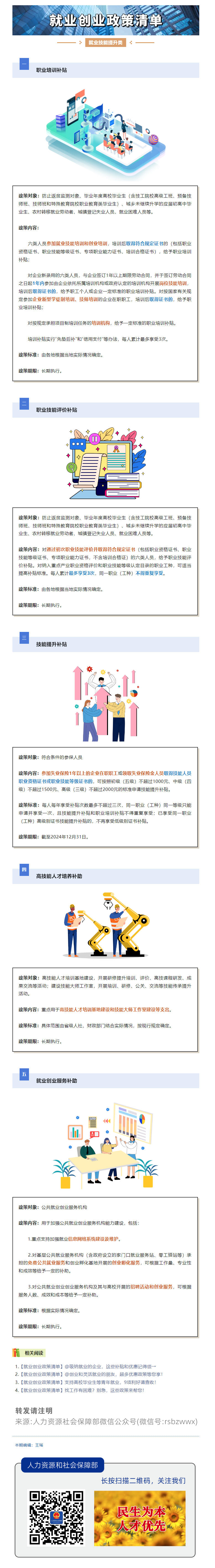 【就业创业政策清单】提升就业技能,可领补贴补助!