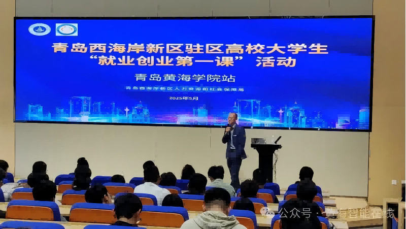 5 月 9 日下午,青岛西海岸新区驻区高校大学生 “就业创业第一课” 活动在学校知行楼 434 报告厅顺利举行。活动特邀青岛大东自动化科技有限公司董事长杨巍担任主讲嘉宾,吸引了众多学生到场参与。