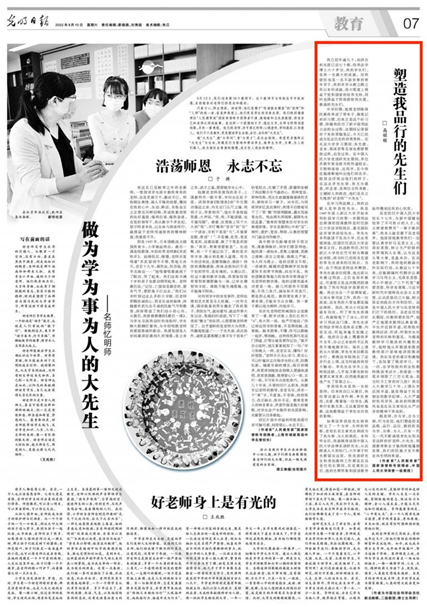 既是师,亦为学,言为士则,行为世范,他们塑造的是品格、品行、品位,教授的是为学、为事、为人,只有一代又一代不断涌现李先生和吴老这样的好老师、大先生,我国教育事业才能持续地蓬勃发展,我们的民族才有不断走向光明的希望。