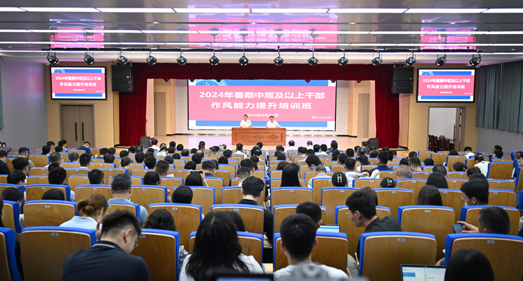为学习贯彻党的二十届三中全会精神,加强学校干部队伍建设,提高干部政治素质和业务能力,培养一支忠诚干净担当作为的高素质专业化的干部队伍。8月26—28日,学校举办 2024 年度暑期中层及以上干部作风能力提升培训班。学校党委书记李东在开班仪式上作动员讲话,校长王渊明主持开班式并在培训结束时做培训工作总结和部署新学期工作。学校领导班子成员、全体中层干部及部分骨干教师参加了培训。