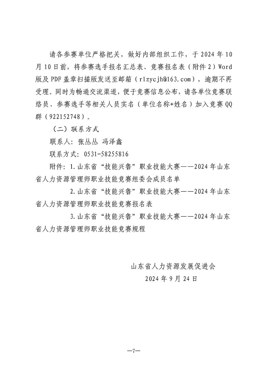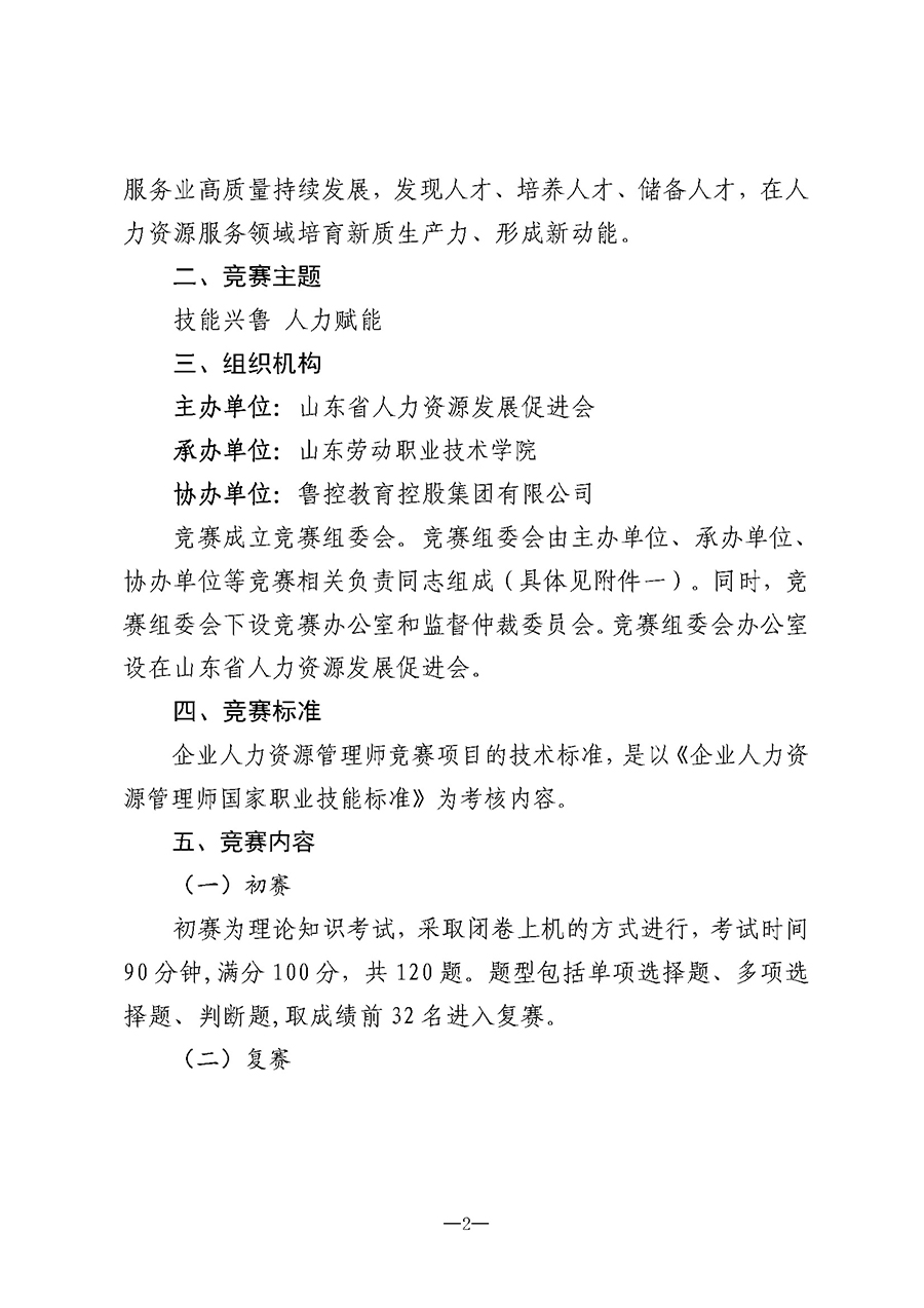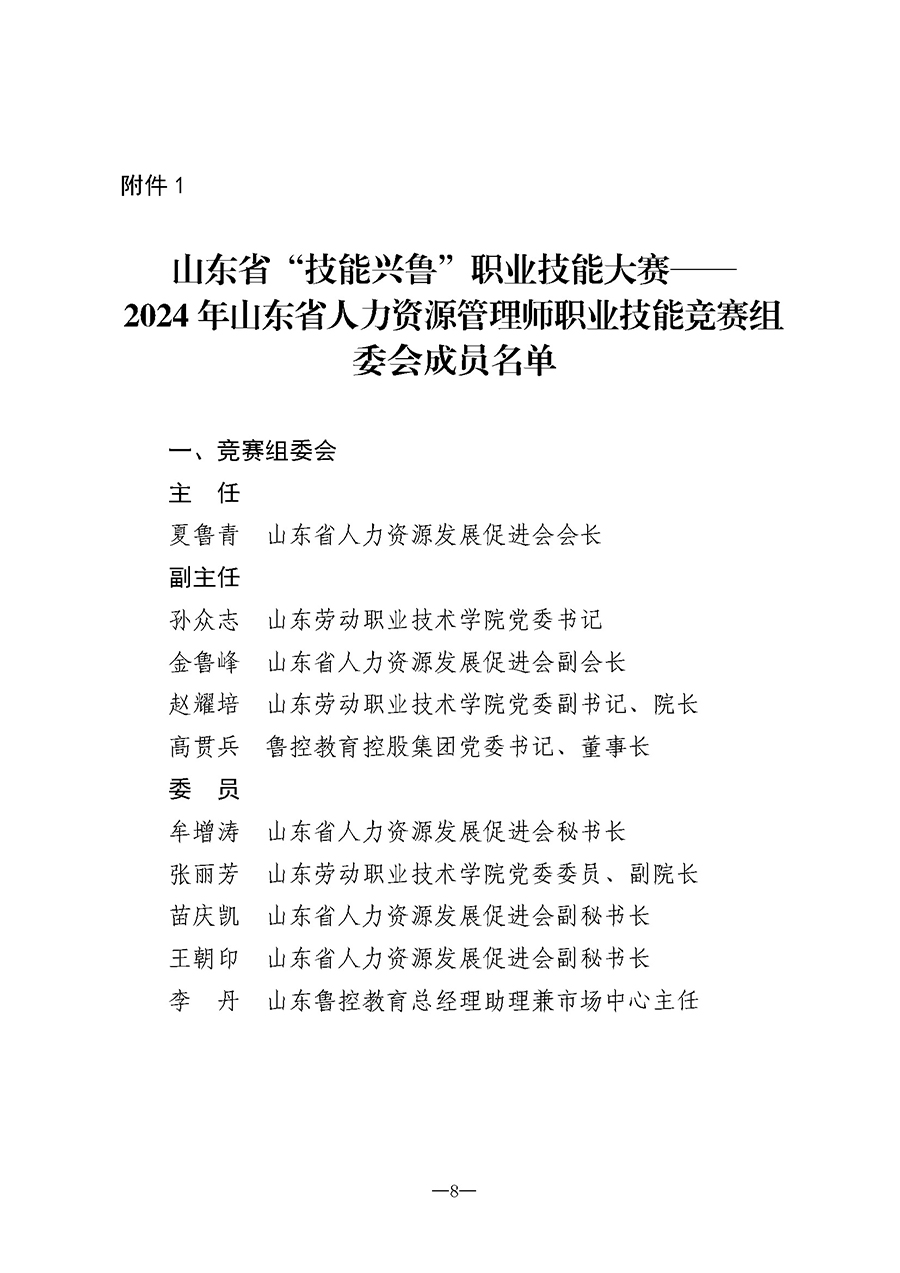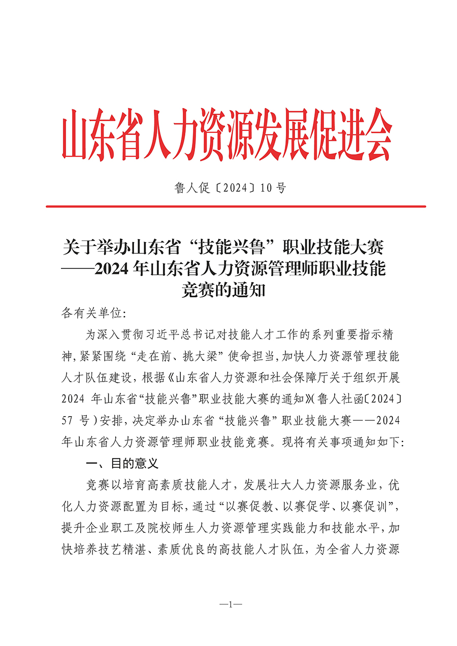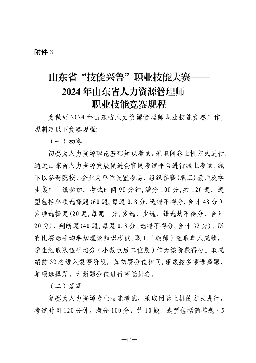 关于举办山东省“技能兴鲁”职业技能大赛——2024年山东省人力资源管理师职业技能竞赛的通知