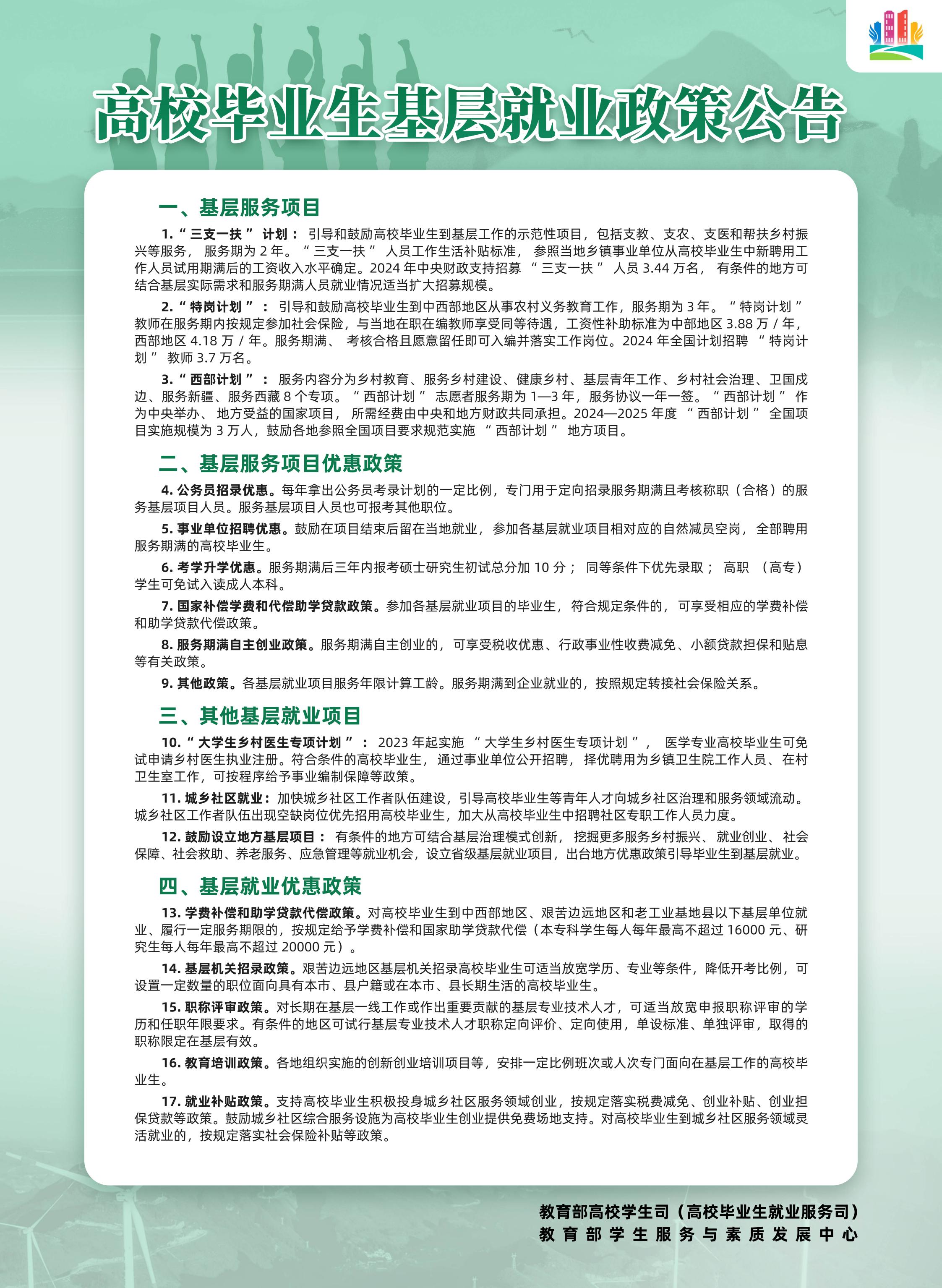 普通高校毕业生基层就业政策公告