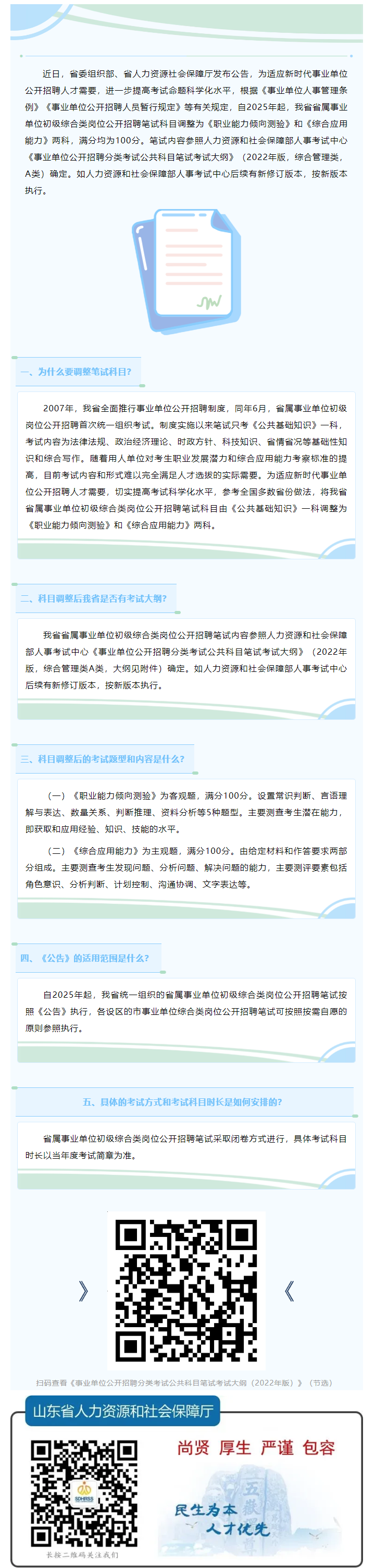 自2025年起,我省省属事业单位招聘笔试由一科变为两科