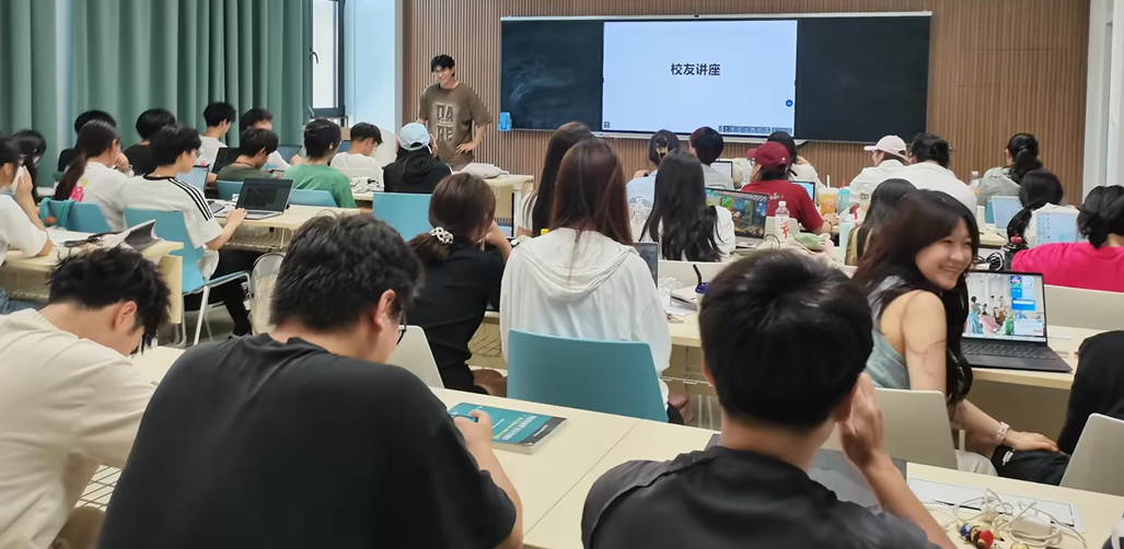 讲座现场座无虚席,气氛热烈。校友分享了自己的经验和感悟。他们以自己的亲身经历为例,讲述了如何在职场中立足、如何面对挑战和困难、如何保持学习和成长等话题。校友的分享深入浅出、生动有趣,赢得了在场师生的阵阵掌声。