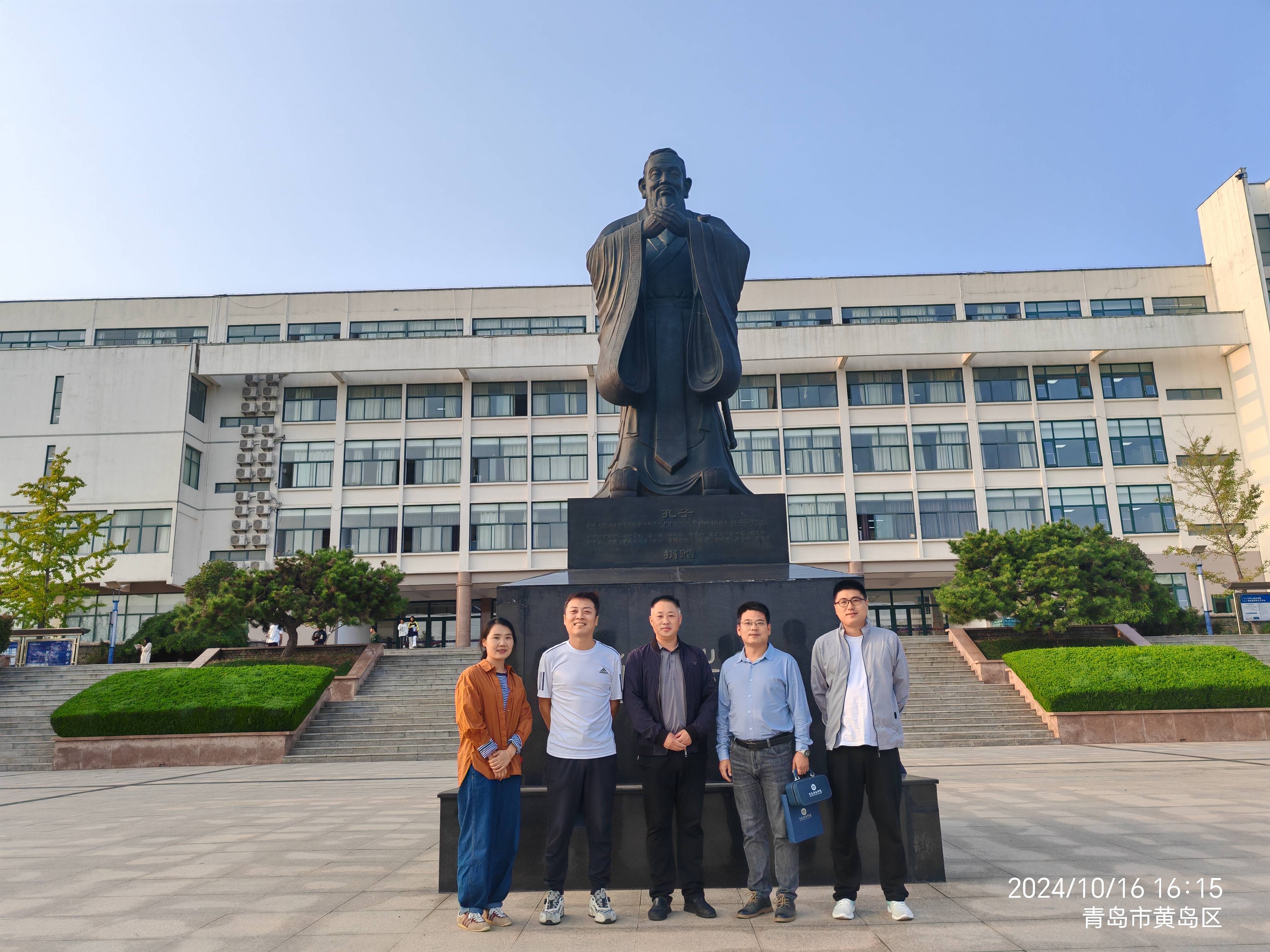 10月16日,在这个秋高气爽的日子里,迎来了一批特殊的客人——校友们重回母校。2004级校友李圣云现任山东沃丰新材料有限公司营销总监,2004级校友郭学三现任青岛鲁飞商务服务有限公司总经理。他们怀着对母校的深深眷恋和感恩之情,踏上了这片曾经挥洒青春汗水的土地。影视学院院长助理齐海明陪同参观了北区校园,知信楼,学校雷锋馆、红色文化VR实践教学中心和阅享空间等教学和文化场所并合影留念。