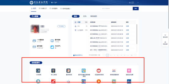 OA系统、学工系统、教务系统、教学质量监测保障系统、迎新系统、就业系统、维普毕业论文(设计)管理系统、图书馆座位预约、图书检索系统、知网校外访问等。