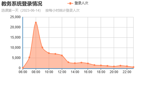 最终选课工作在大家的共同努力下取得了成功,选课第一天教务系统用户登录76873人次,选课的第一小时高峰期用户登录22378人次。