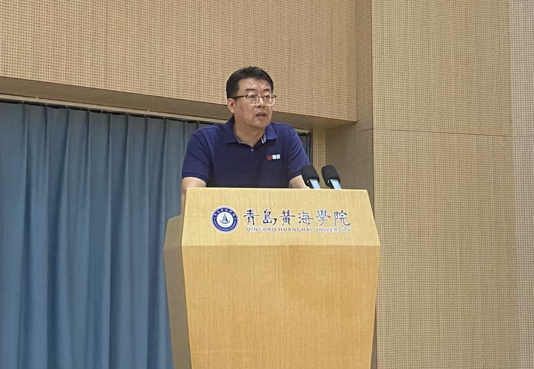上海寰创网络科技有限公司山东省区域运营总经理王强也在表彰大会上致辞。他指出,今夜的颁奖典礼展现数字时代青年奋斗者的风采,青年对技术的热爱是推动行业变革的核心动能。参赛选手在实践中秉持“向善而行”的准则,体现技术创新与道德推理的结合。王强强调校企共育的重要性,称黄海学院的双赛联动培养复合型人才,打开产业创新的三重门:认知之门、协作之门和进化之门。他展望行业趋势,提到技术的温度革命和人才的范式迁移,鼓励同学们做“硬科技”的深耕者、“跨次元”的链接者和 “长周期” 的坚守者。最后,王强以诗人艾青的名句与同学们共勉,愿他们在数字文明中编织璀璨轨迹。