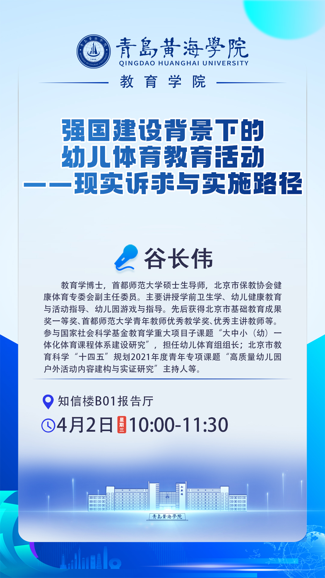 讲座题目:强国建设背景下的幼儿体育教育活动——现实诉求与实施路径