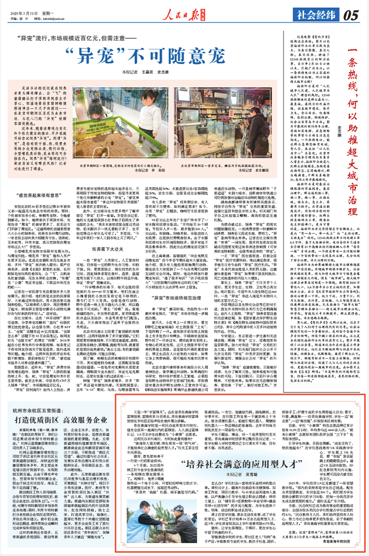 怎么办?学校打出一套培育乐业精神的组合拳。课程设计上,瞄准科技前沿和关键领域,探索工作室、项目化教学,与45家企业共建育人基地,以产教融合引导学生建立职业认同感;师资力量上,以“辅导员+任课教师+学业导师+就业导师+社团导师”的多元化配置,为学生提供个性、精准、动态的职业成长指导。
