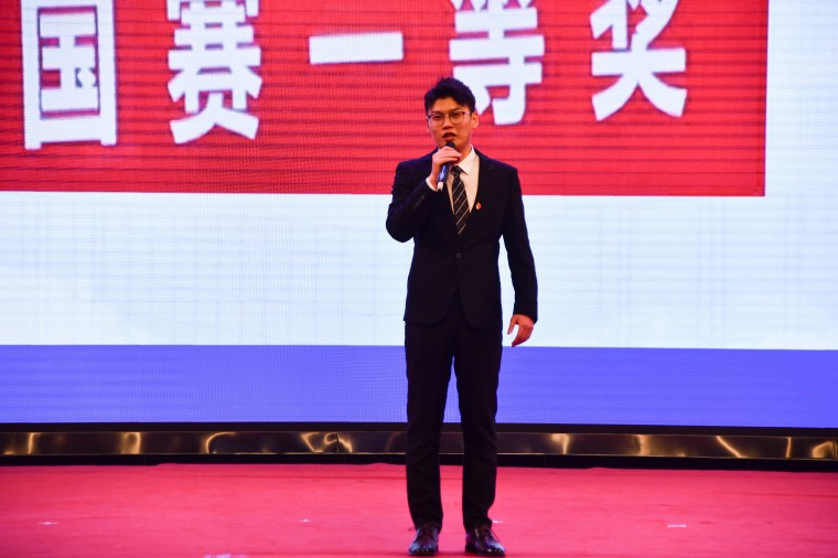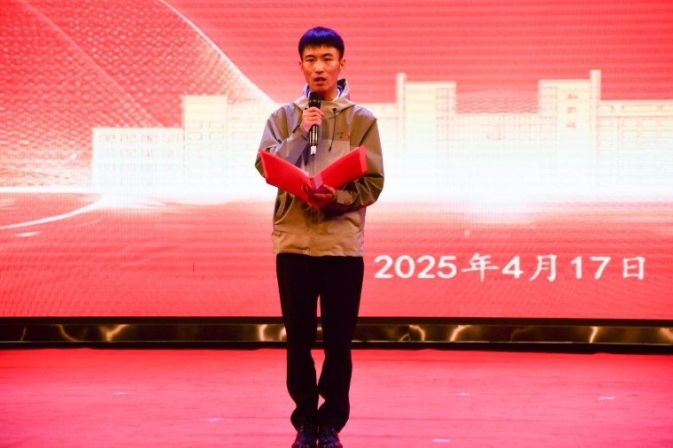 智能制造学院优秀学子焦兆乾以《在“有为”与“无畏”之间——我的青年成长方程式》为题,讲述了他在学科竞赛与志愿服务中的成长故事。在山东省大学生智能制造大赛中,他带领团队克服机器人模块烧毁的困境,最终获得二等奖,感悟到“失败是成长的勋章”。作为小家电义务维修项目负责人,他累计志愿服务超1000小时,服务人群超1万人,并创新融合3D打印技术科普等活动,打造多项目志愿服务新模式。焦兆乾说:“真正的成长,是当掌声退潮后,依然为热爱而战。”学生工作部副部长张永军为其颁发纪念奖杯。